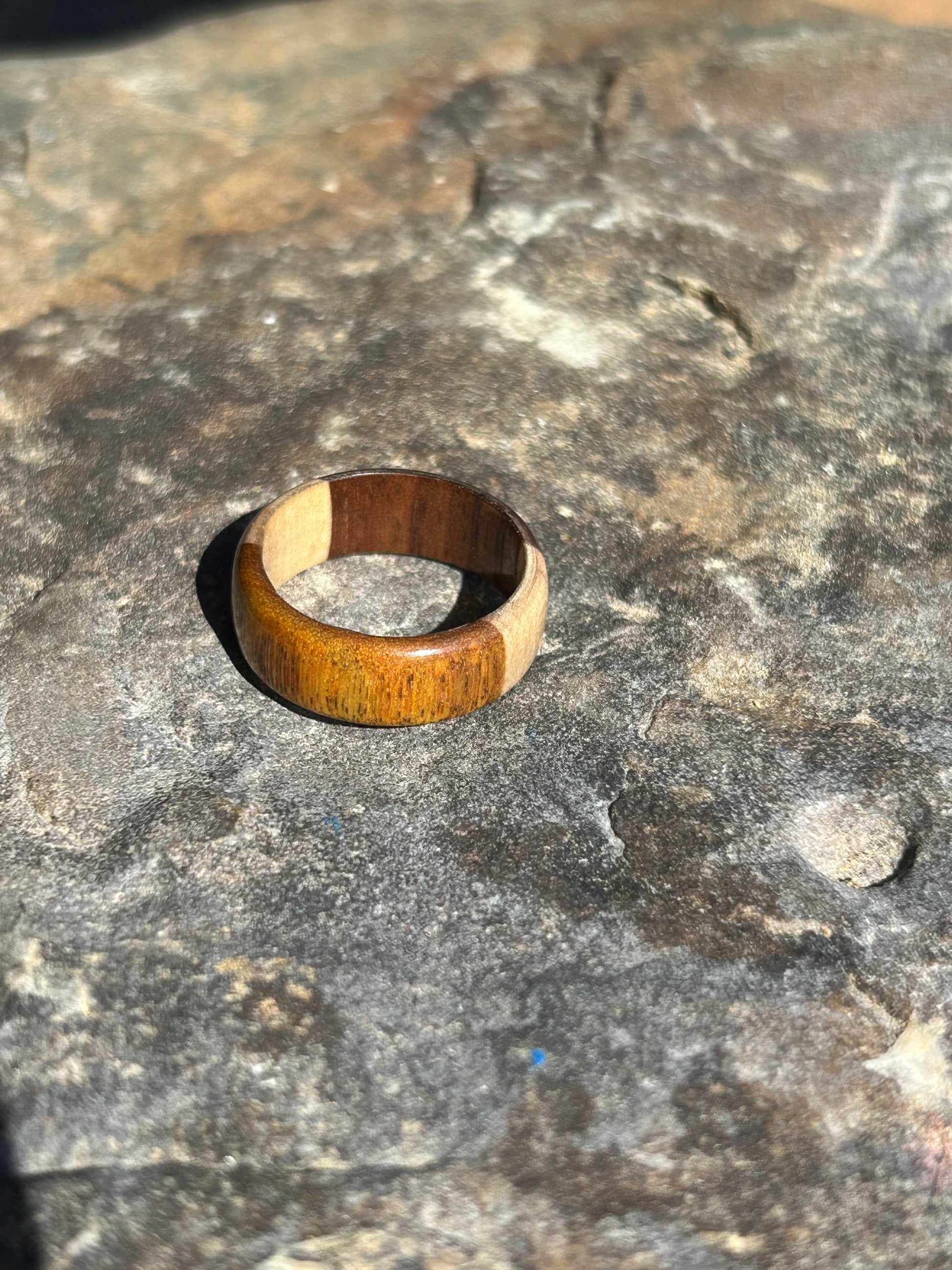 Canary Wood Black Walnut and Maple Turned Ring Size 10.5