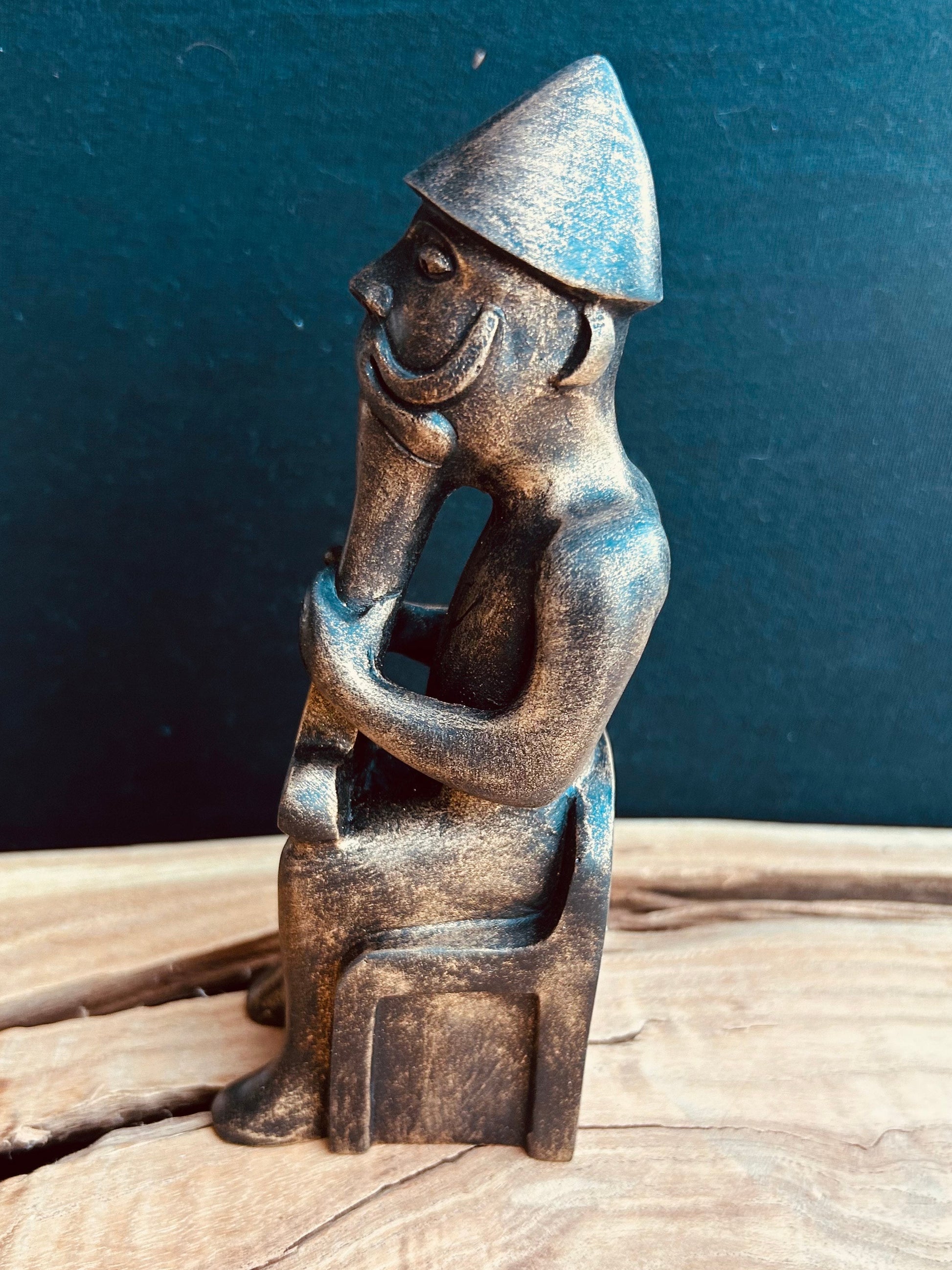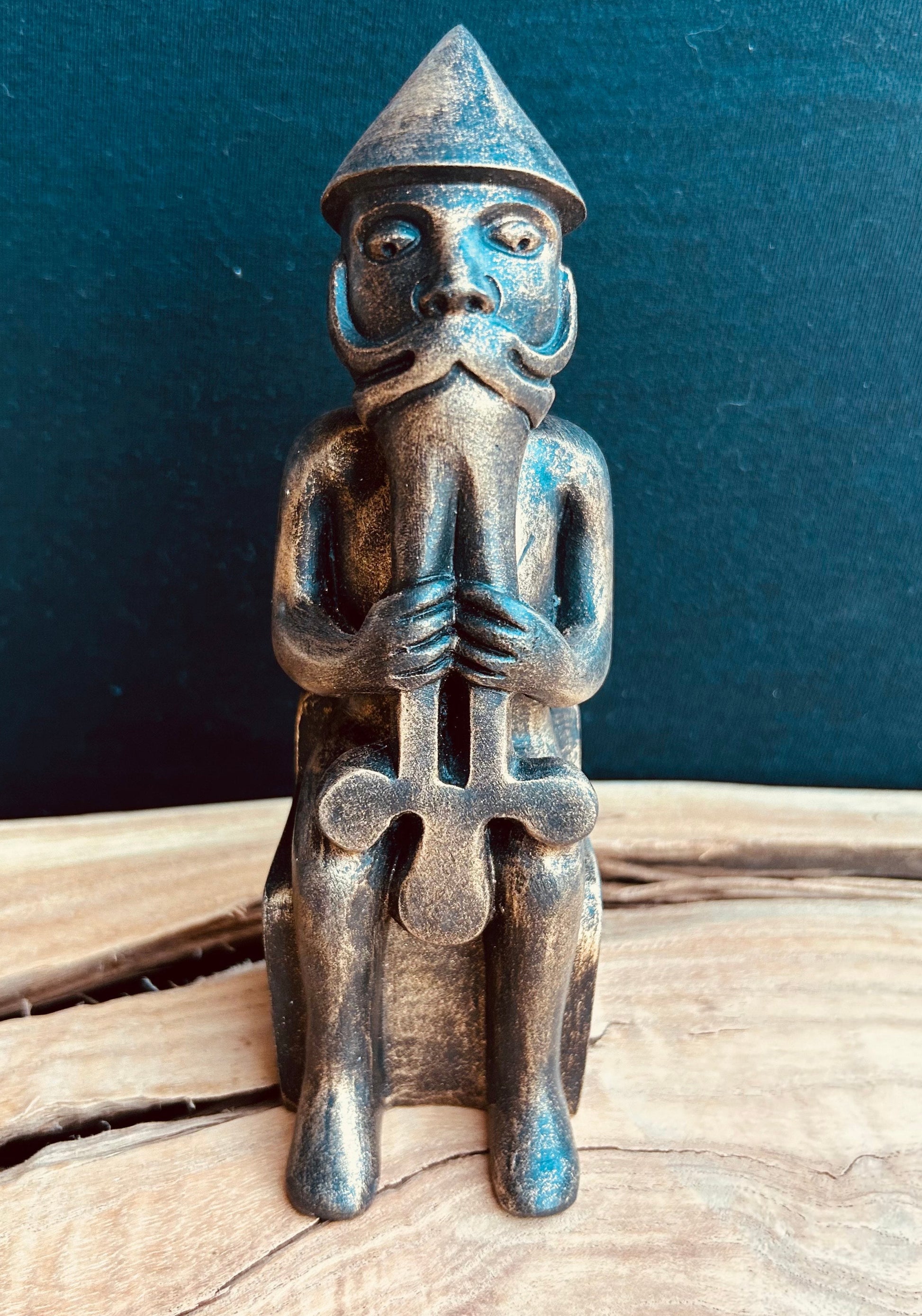 Experience the might of Thor, the god of thunder, with this impressive replica bronze statue. Crafted in the likeness of a statue discovered at the Eyrarland Farm in Iceland, dated to 1000AD, this exclusive piece is a rare find in Viking history. The statue's prominent feature is the hammer, believed to be the legendary Mjolnir, solidifying its identity as Thor. Standing at 7", this Gypsum stone creation weighs 1 lb, making it a true masterpiece for any collector.