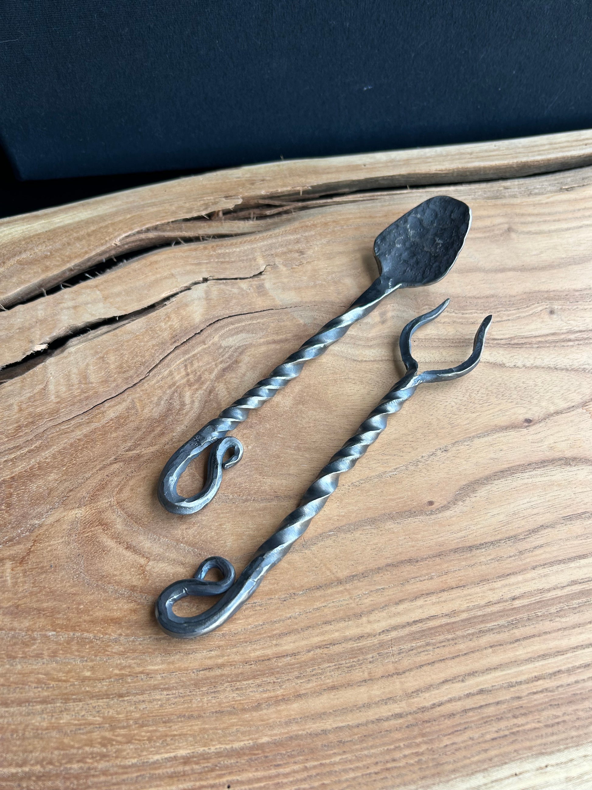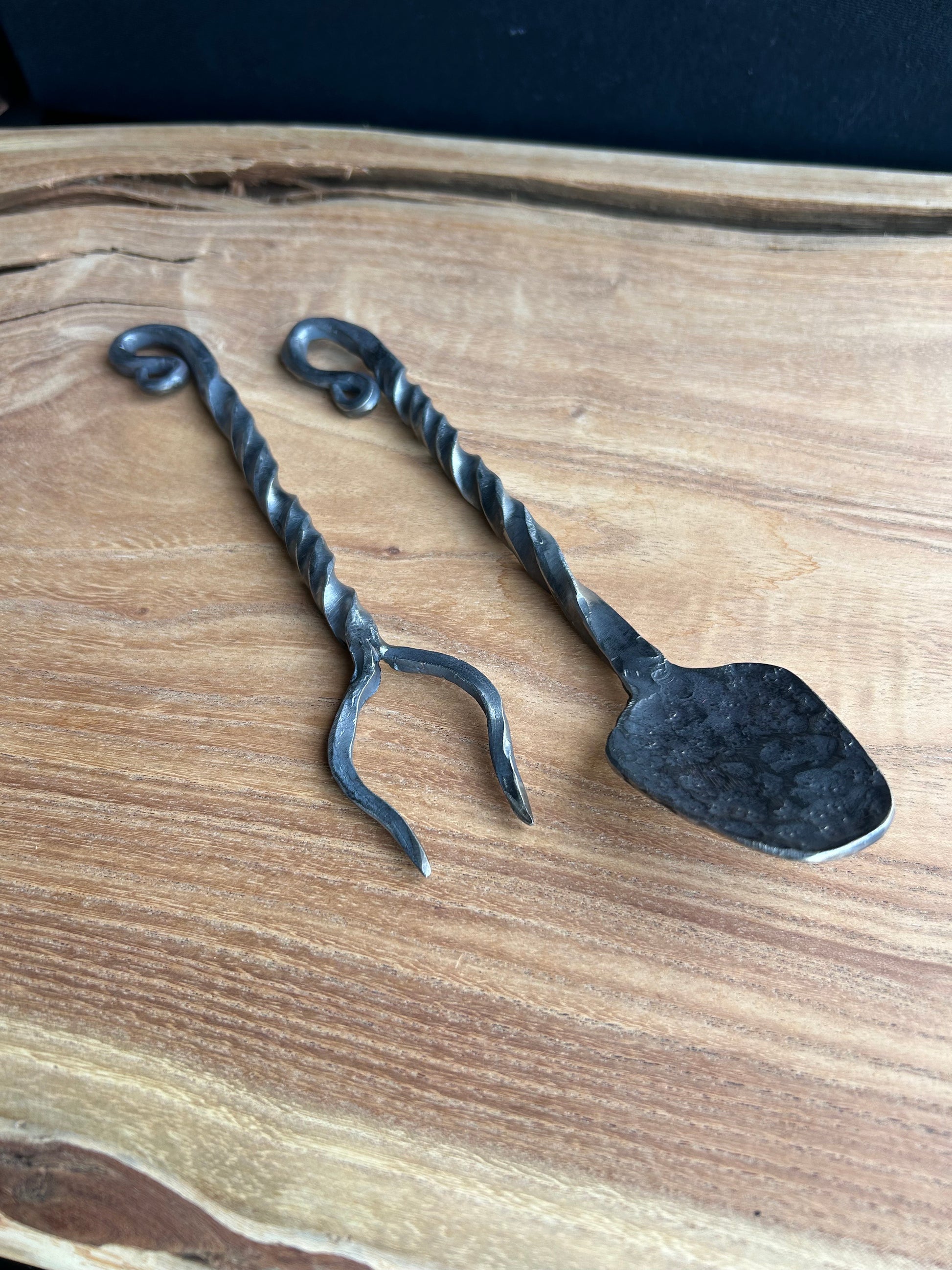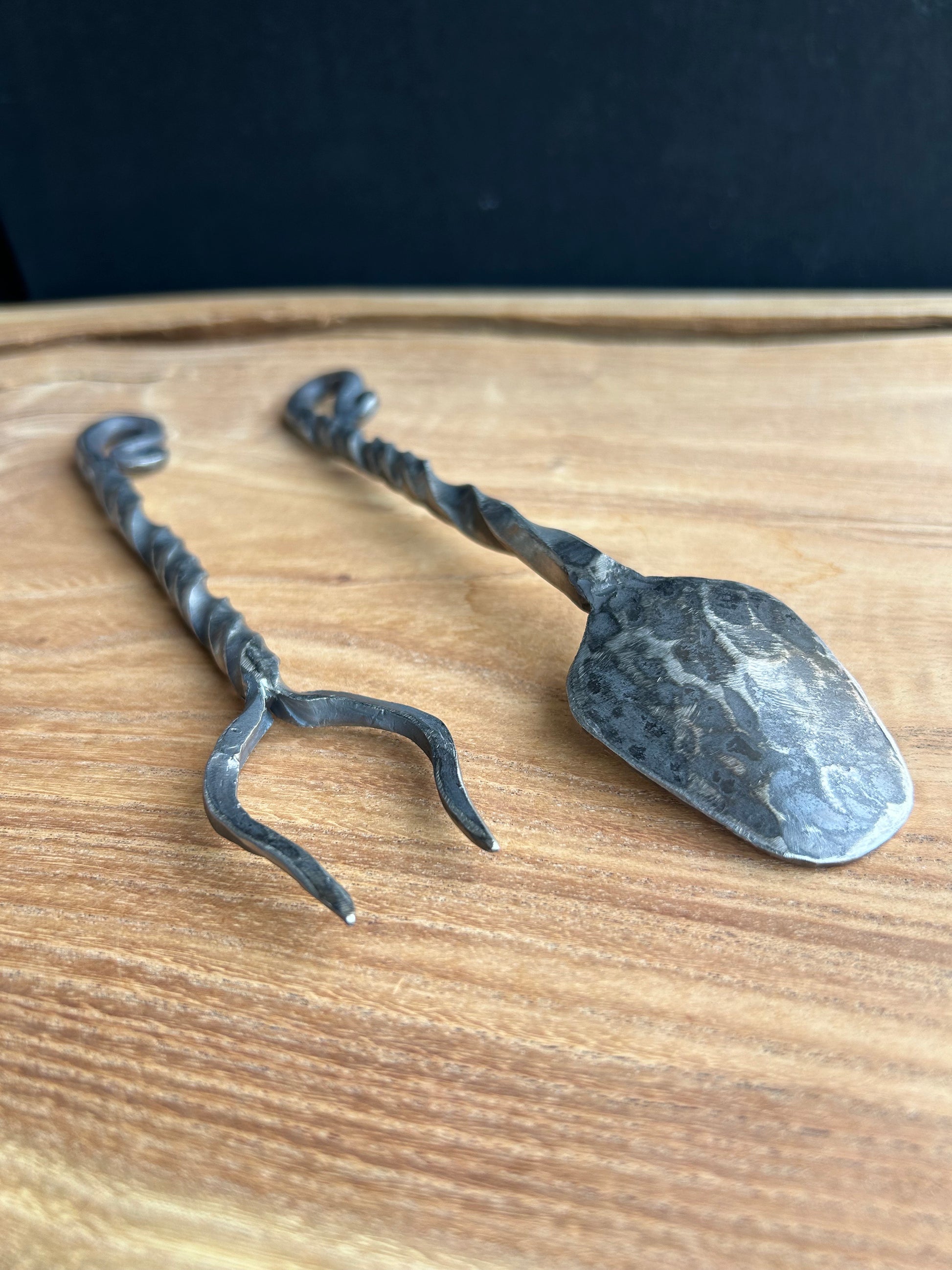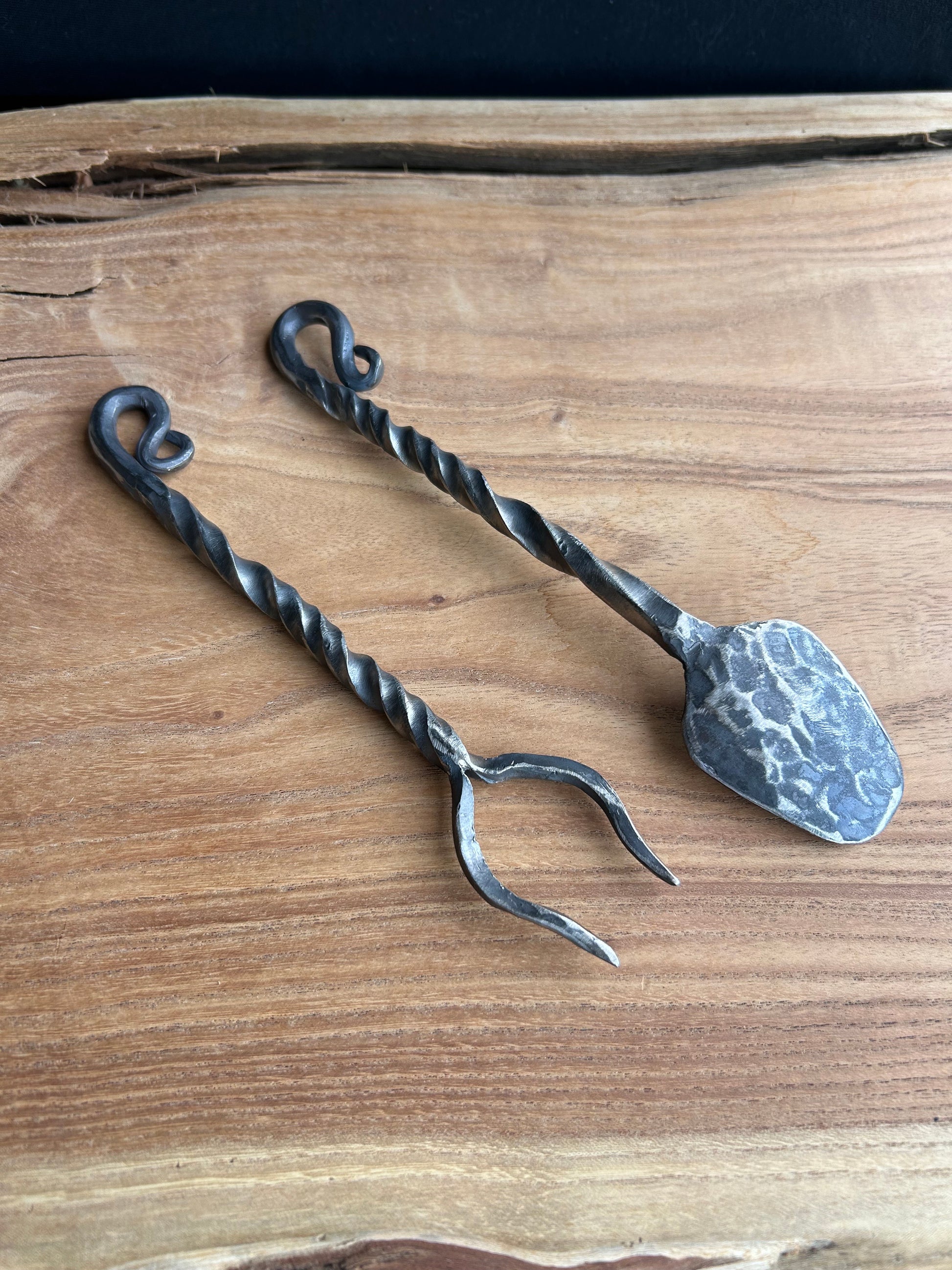 Indulge in the unparalleled luxury of our handcrafted stainless steel fork and spoon set, designed to serve you with elegance and grace for years to come. The beautifully-sculpted spoon measures 8 1/4" in length, while the fork boasts a regal 7 3/4".